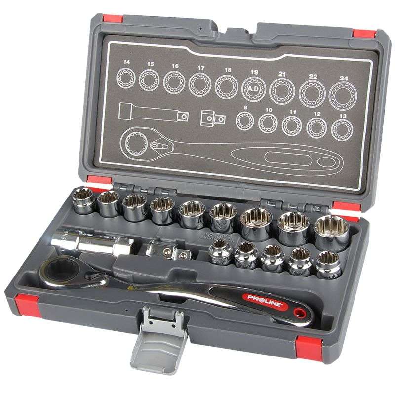 -chei tubulare canelate la urmatoarele marimi: 8mm (5/16"), 10mm (3/8"), 11mm (7/16"), 12mm (15/32”), 13mm (1/2"), 14mm, 15mm (19/32"), 16mm (3/4"), 17mm (11/16") , 18mm (3/4"), 19mm (3/4"), 21mm (13/16"), 22mm (7/8"), 24mm (15/16")