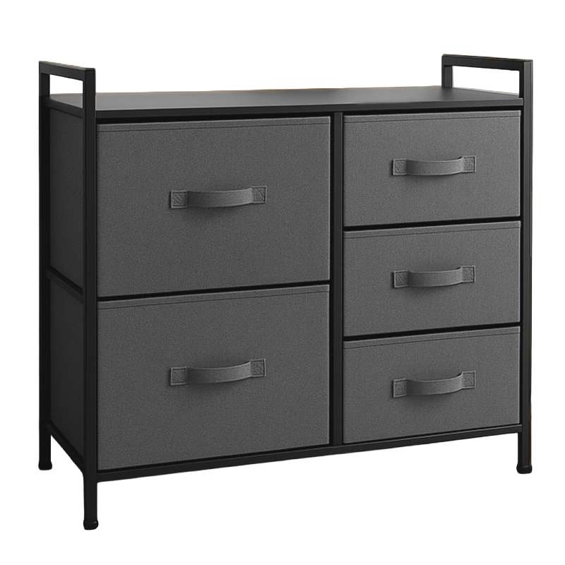 Comoda 5 Sertare Textile / 83x29x77cm - Antracit/negru