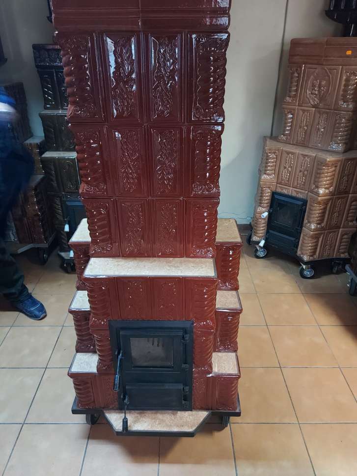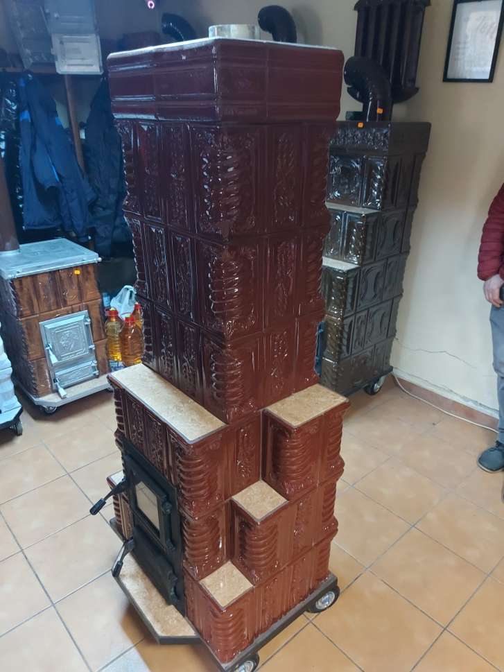 Teracota de foarte buna calitate ,captusita cu caramida de samot , usa din fonta monobloc cu geam termorezistent , adancime focar 35 cm ,evacuare 120 mm , fumuri verticale