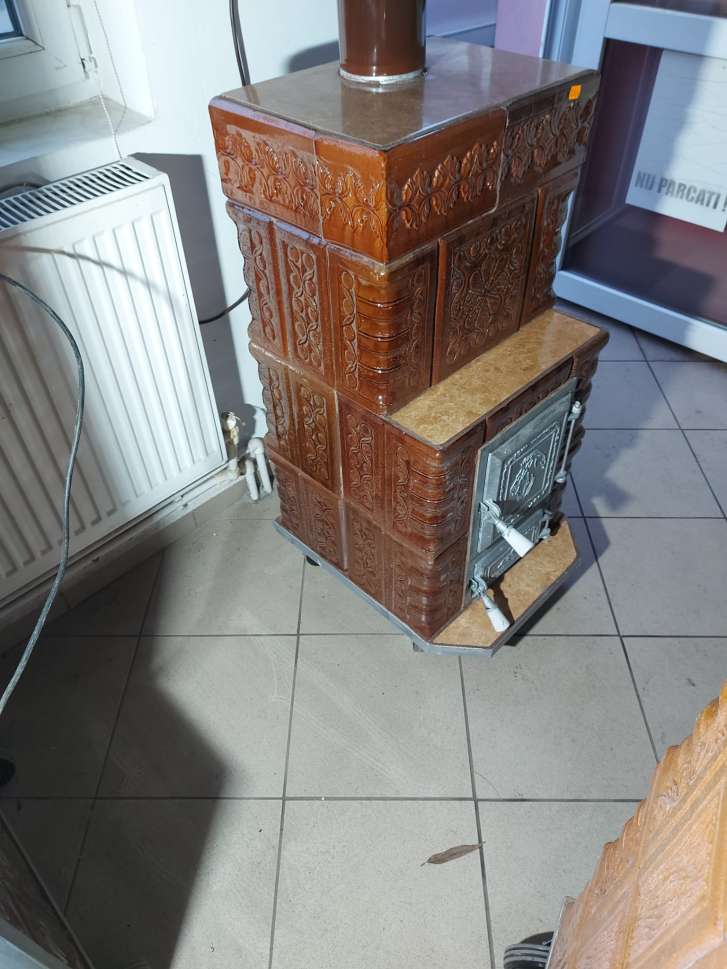 Soba turn 3 randuri cu etajera la randul 2 ,antijar, clapi fonta , culoare maro